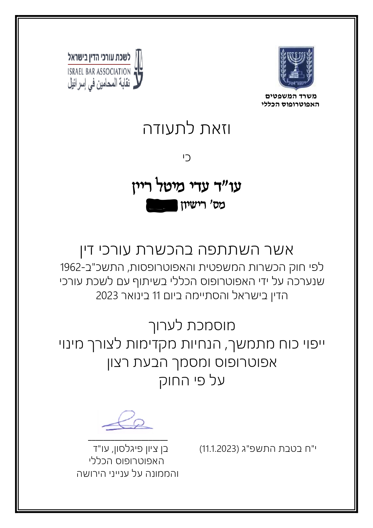 מוסמכת לערוך ייפוי כוח מתמשך מטעם האפוטרופוס הכללי והממונה על ענייני הירושה.