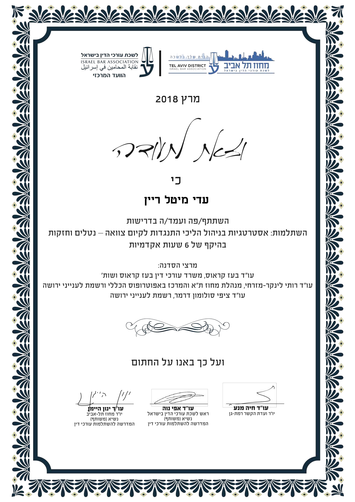 לעורכת הדין עדי מי טל-ריין, מומחיות, מקצועיות חסרת פשרות, ניסיון רב שנים בייצוג משפטי, פתרון מחלוקות ויישוב סכסוכים תוך שימת דגש והקפדה על יחס אישי חם ומותאם, חשיבה משפטית חדה, יצירתית אסרטיביות וחתירה למטרה באופן המאפשר התאמת הפתרון המיטבי, למידותיו וצרכיו של כל לקוח.