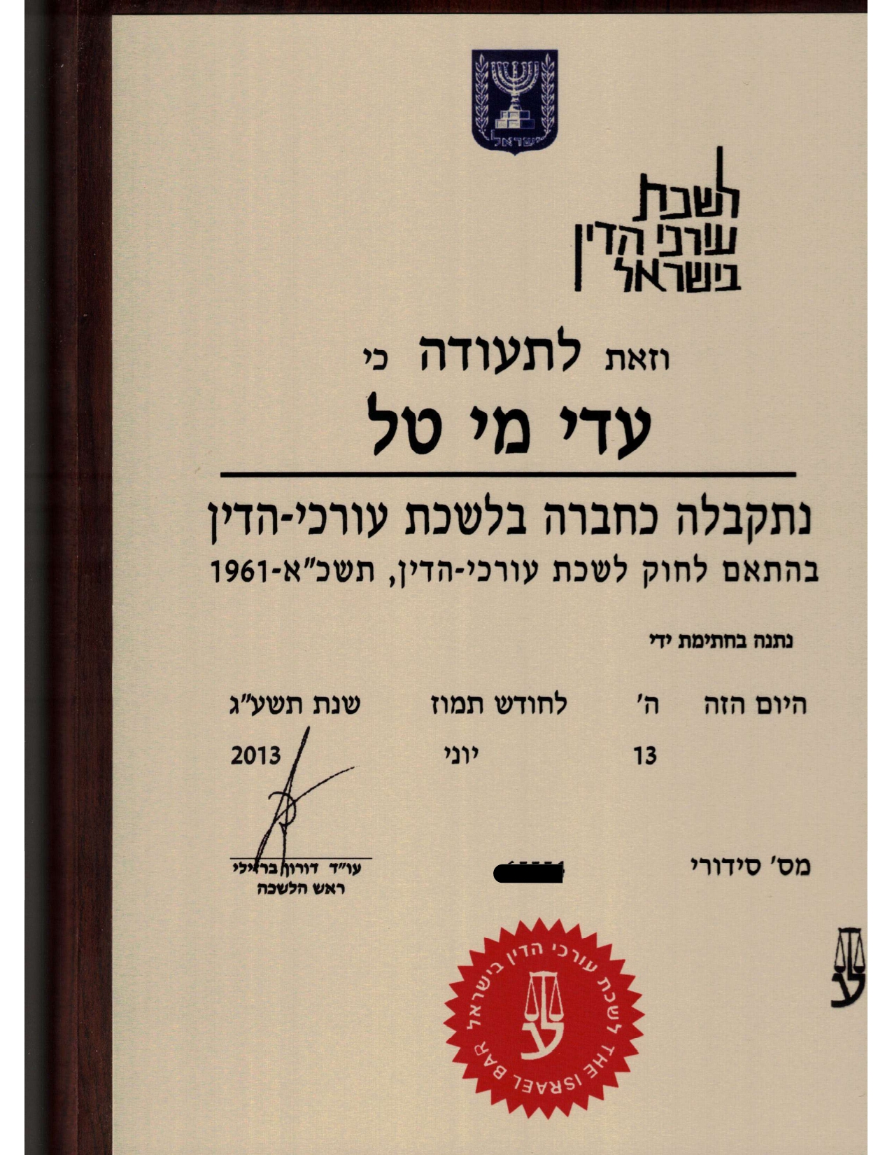 חברה בלשכת עורכי הדין בישראל (2013)