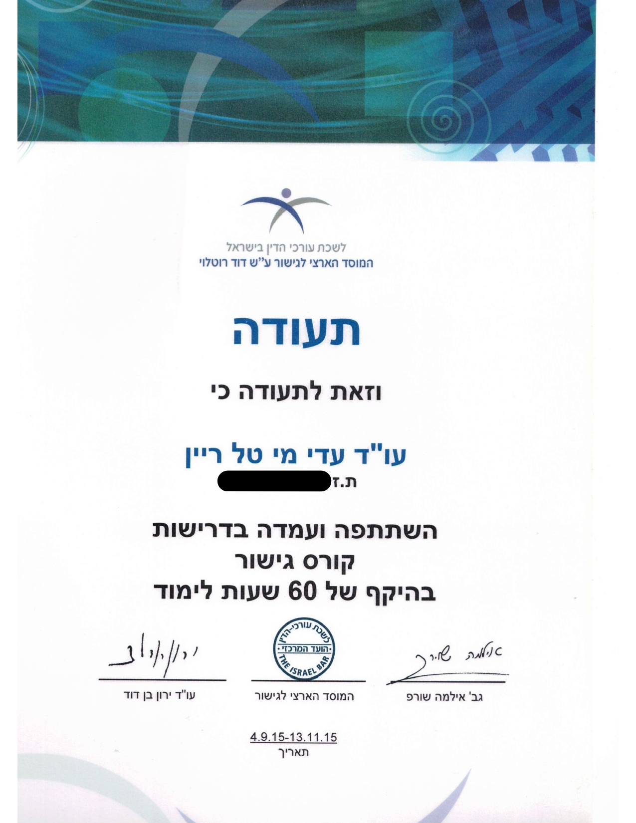 מגשרת מוסמכת, מאת המרכז הארצי לגישור של לשכת עורכי הדין (2013)